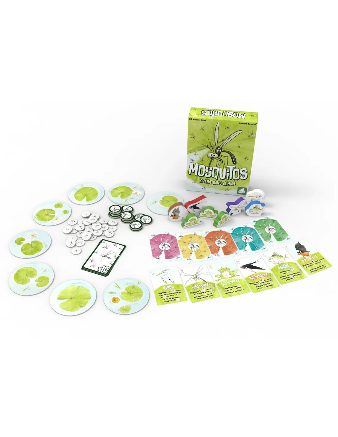 Everyone has their own way of catching mosquitoes. But watch out for the Heron who's coming to stir up trouble! At the end of 10 days' play (10 rounds), the player who has managed to eat the most mosquitoes will be declared the winner.