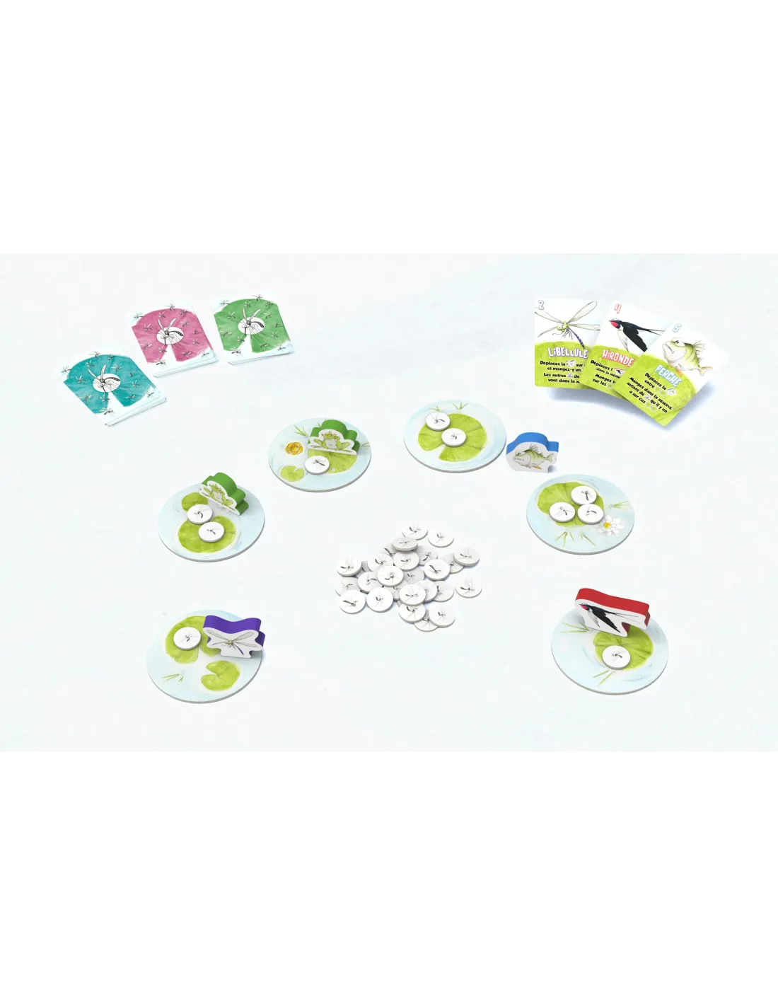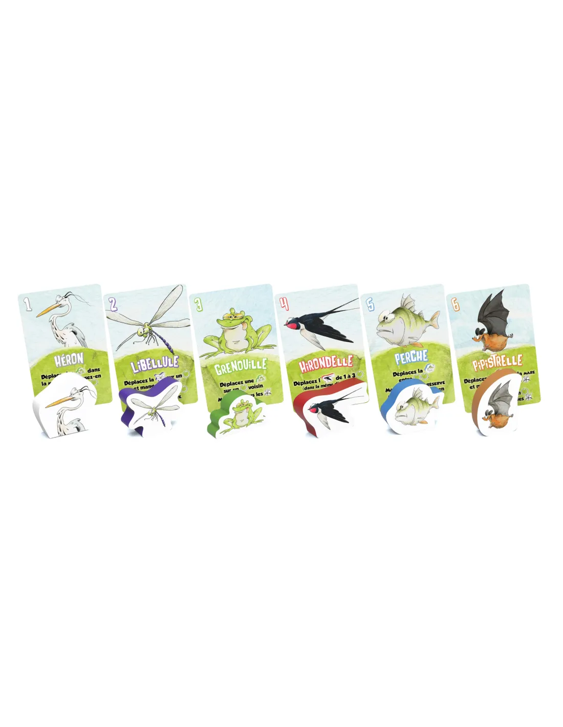 Each day, choose your animal from among Dragonflies, Frogs, Swallows, Perches and Pipistrelles.