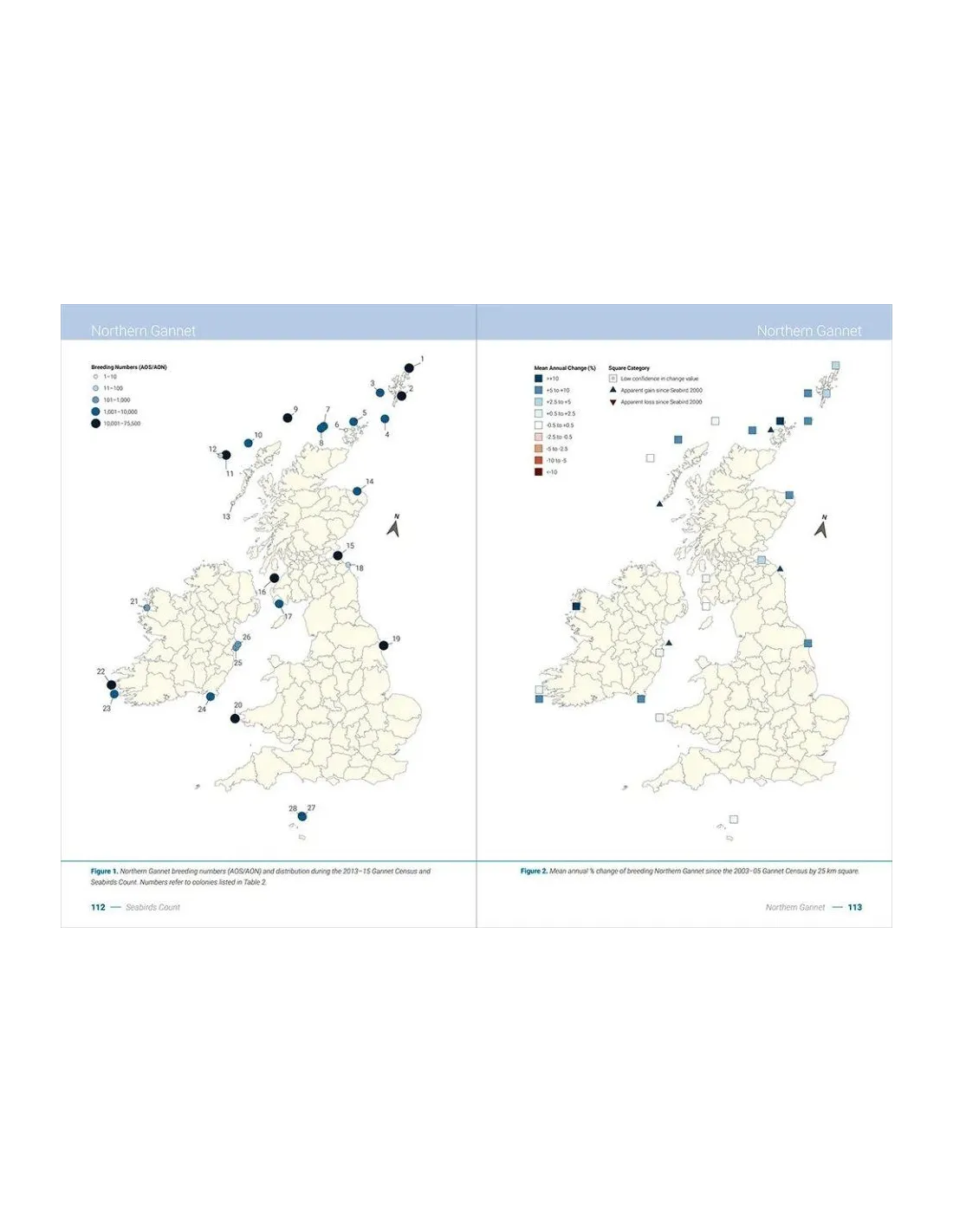 Each of the regularly breeding species now have up to date breeding population estimates. The species chapters present population estimates and trends at different geographical scales along with distribution maps. Interpretation from species authors complements the results, drawing on recent research to piece together the possible drivers for population and distributional change. A separate chapter highlighting the rare breeding seabird species that have been found in Britain and Ireland across the censuses is also included.