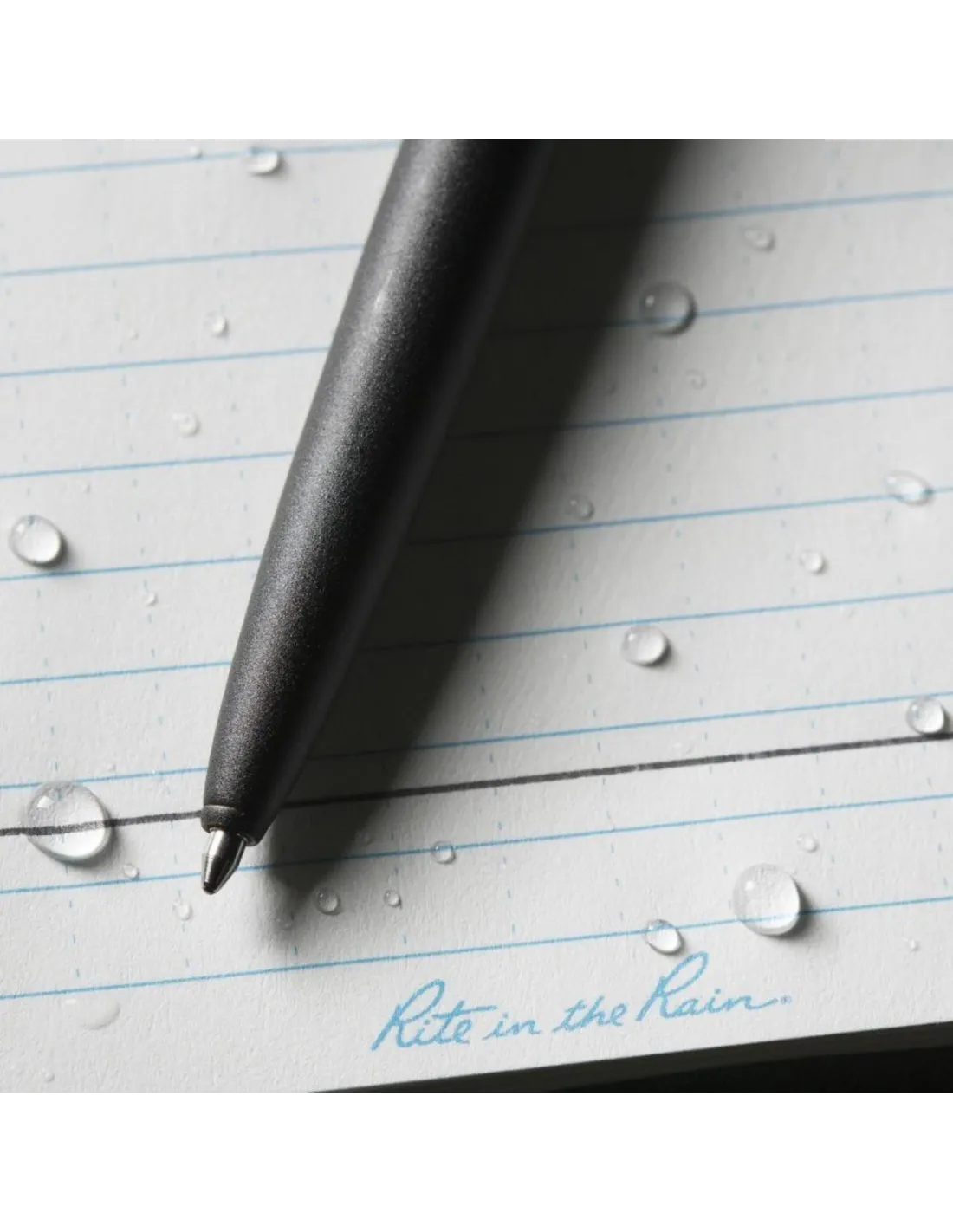 Ce stylo en métal de Rite in the Rain résiste au froid et à des hautes températures (-30°C à +110°C), à l'eau et possède une cartouche pressurisée permettant ainsi d'écrire verticalement ou la tête du stylo vers le haut.