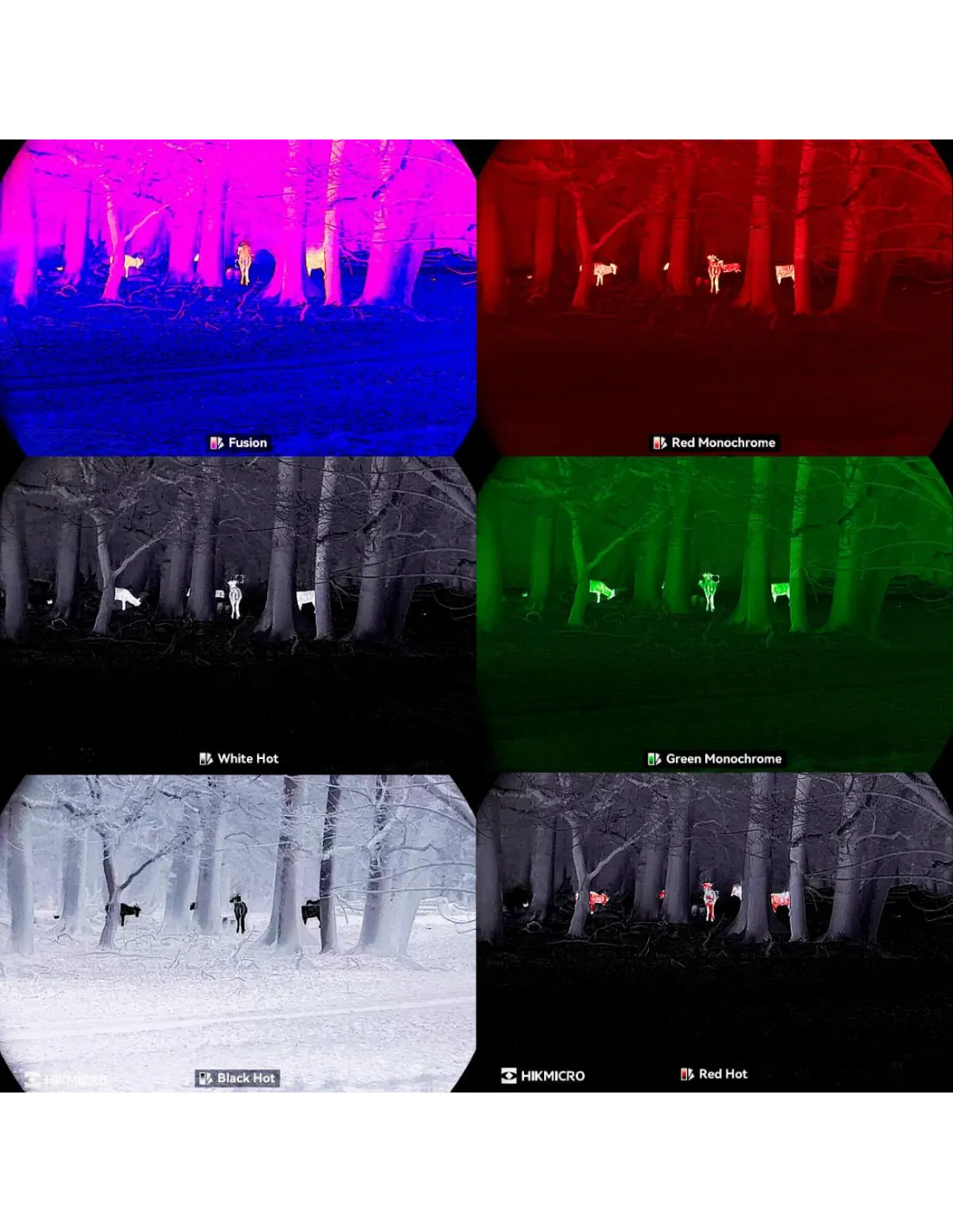 - 6 couleurs (Fusion, White Hot, Black Hot, Red Hot, Red Monochrome, Green Monochrome)