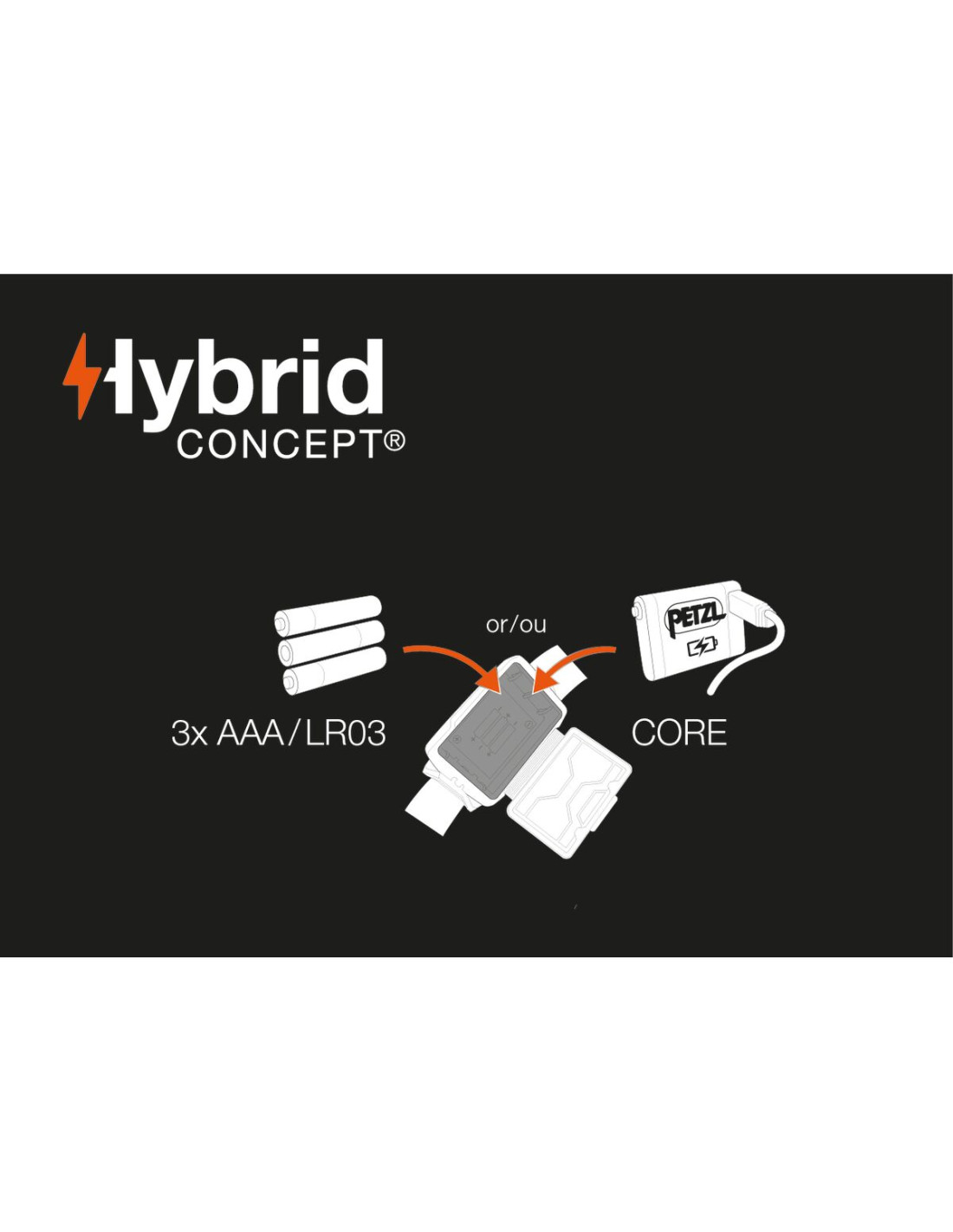 - ACTIK CORE est une lampe HYBRID : livrée avec la batterie rechargeable CORE, elle est aussi compatible avec trois piles AAA/LR03.