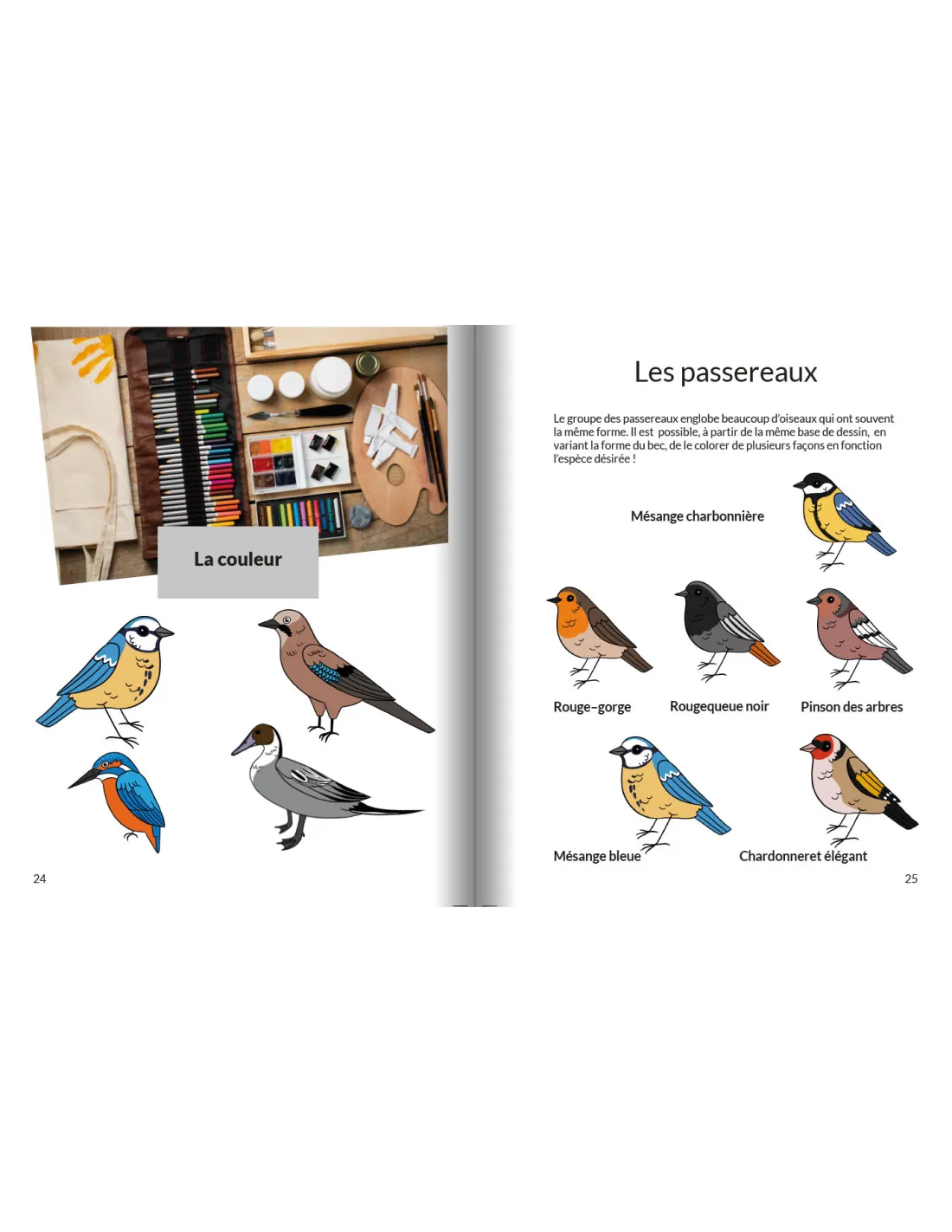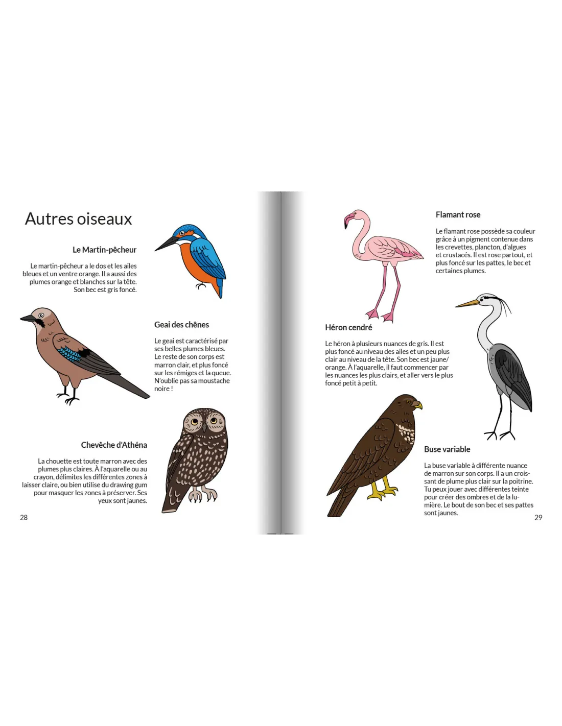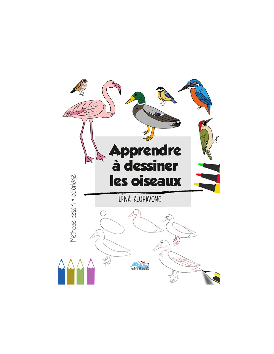 Ce livre vous propose d’apprendre à dessiner les oiseaux : passereaux, pics, rapaces, flamant rose, etc. À partir de formes simples, esquissez les contours, puis le bec, les pattes et les ailes. Et enfin, apprenez à leur mettre des couleurs !